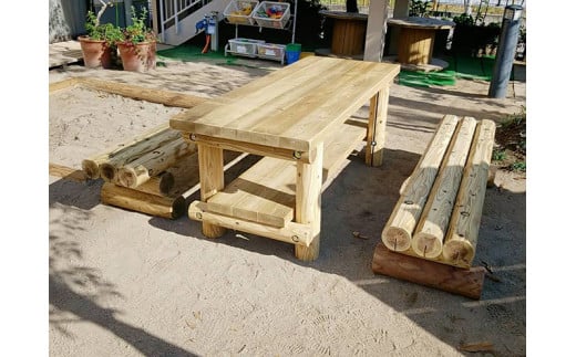 ・木製ガーデンテーブルセット[テーブル1台 ベンチ2台]