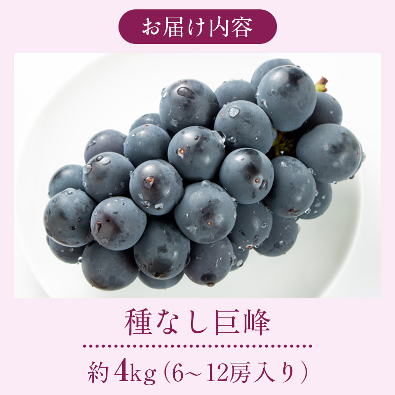 長野県長野市産種なし巨峰約4kg(6~12房入り)