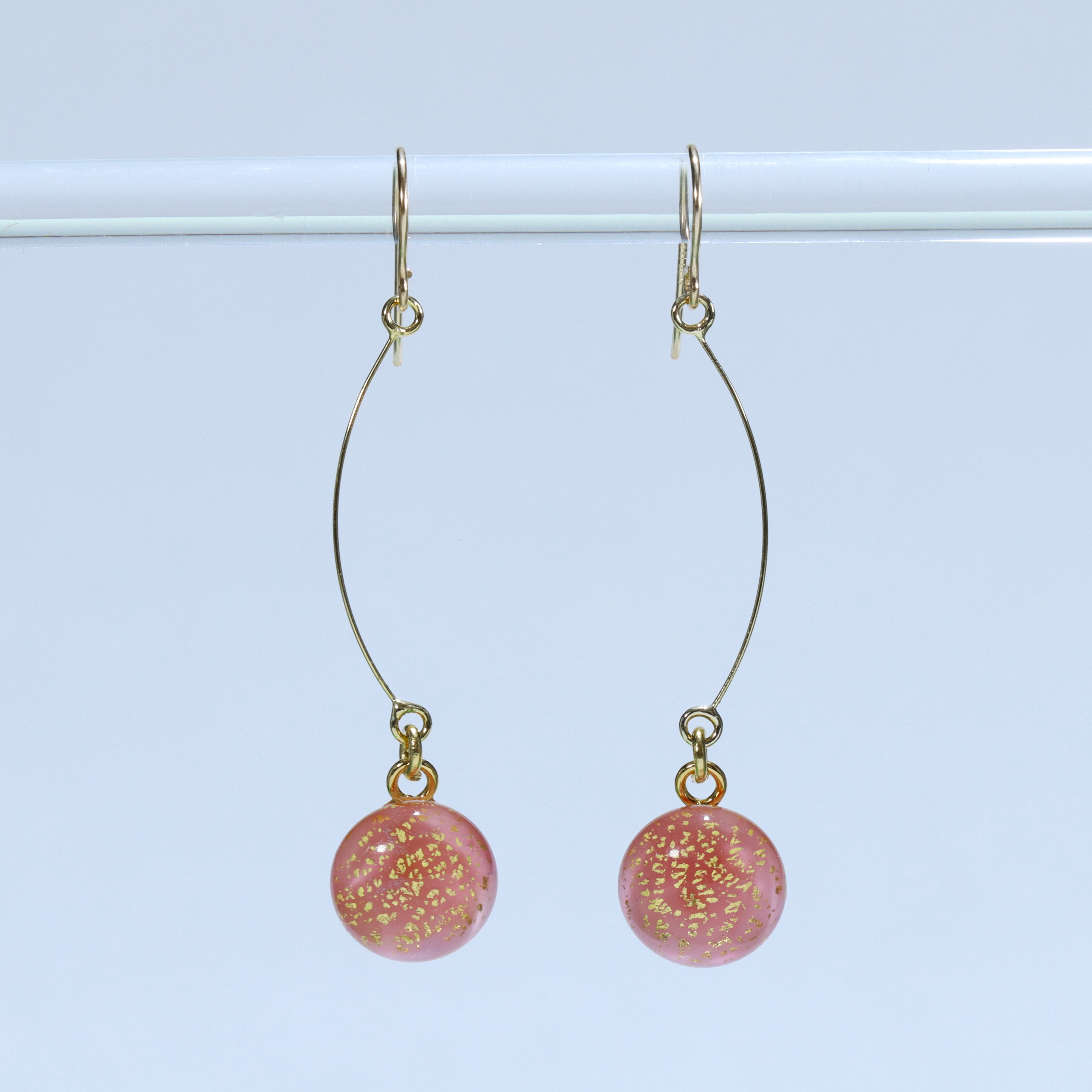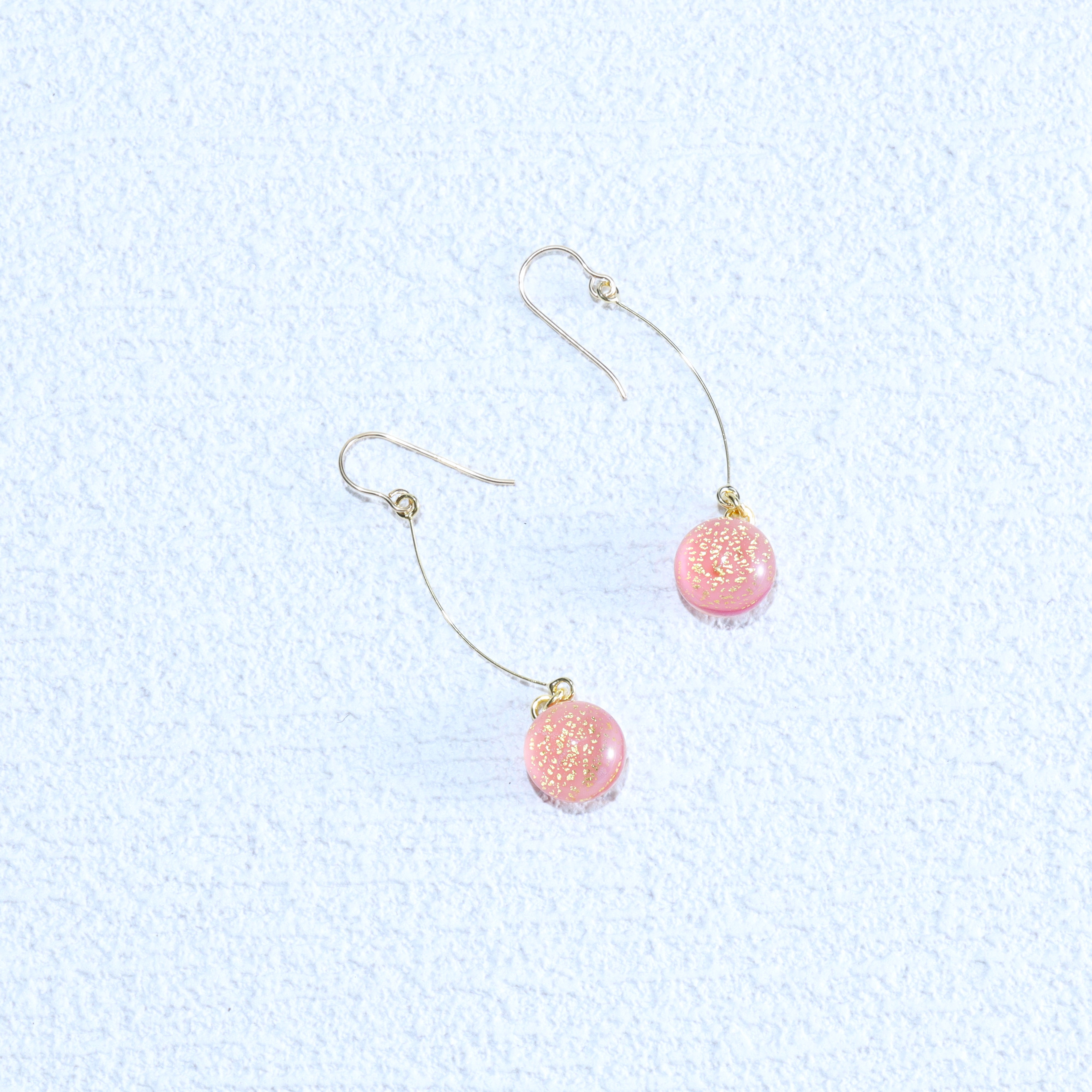 色ガラスに金箔を焼付けてシンプルながらも耳元で揺れ動きキラキラと輝きます。