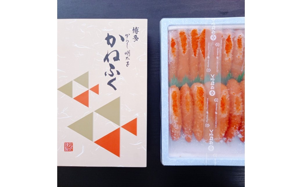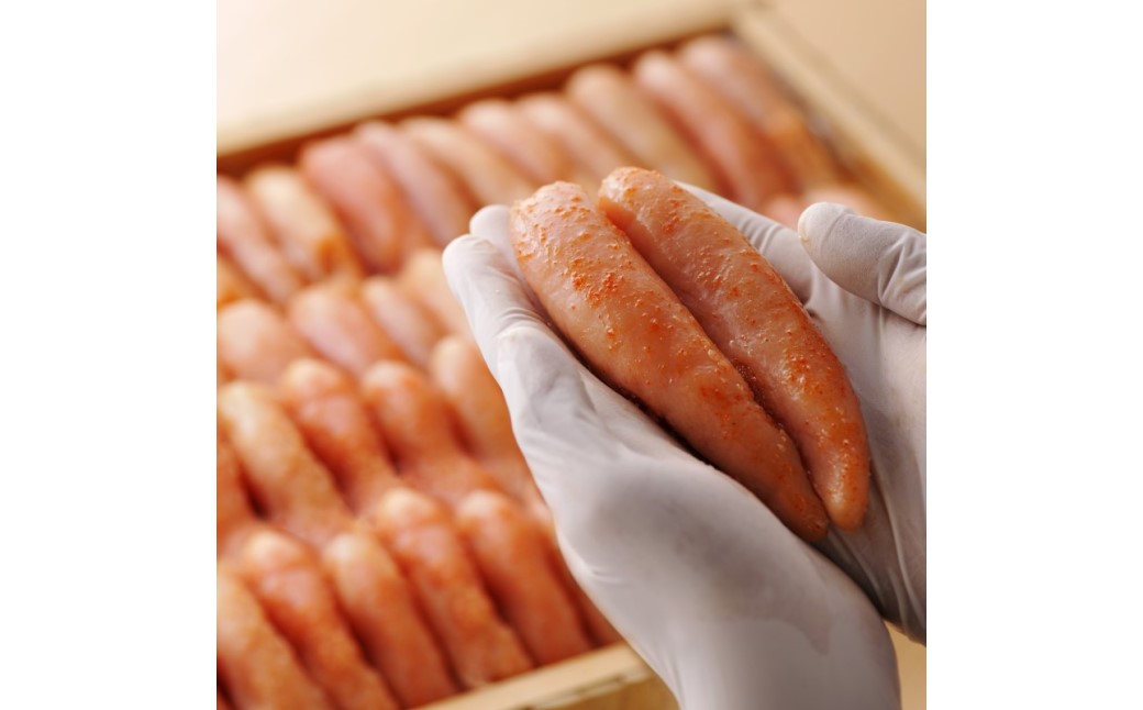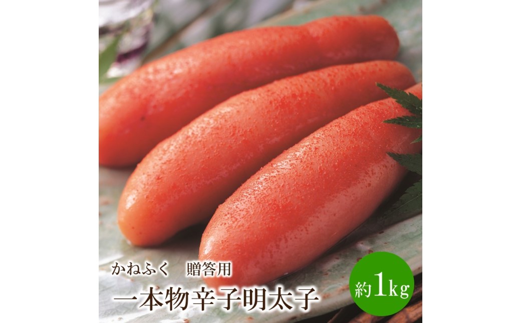 かねふくの辛子明太子の中でも、上質な原料を使用した、特に贈答用として人気のある一本物を約1kgお届けします。