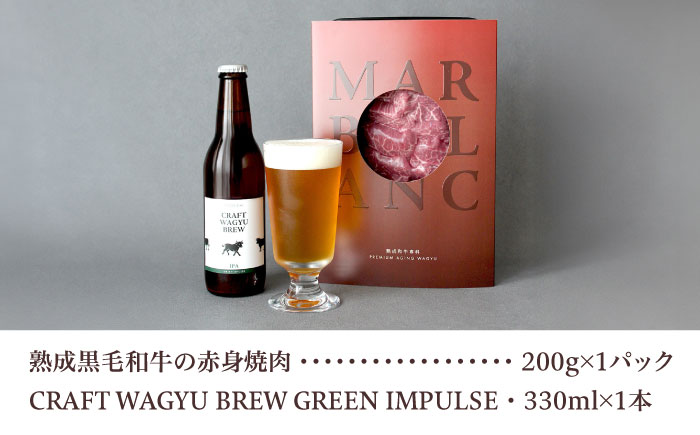 熟成黒毛和牛の赤身焼肉と、肉の旨味を引き立てる本格IPAクラフトビール「Green Impulse」を組み合わせた、贅沢な晩酌ギフトセット。