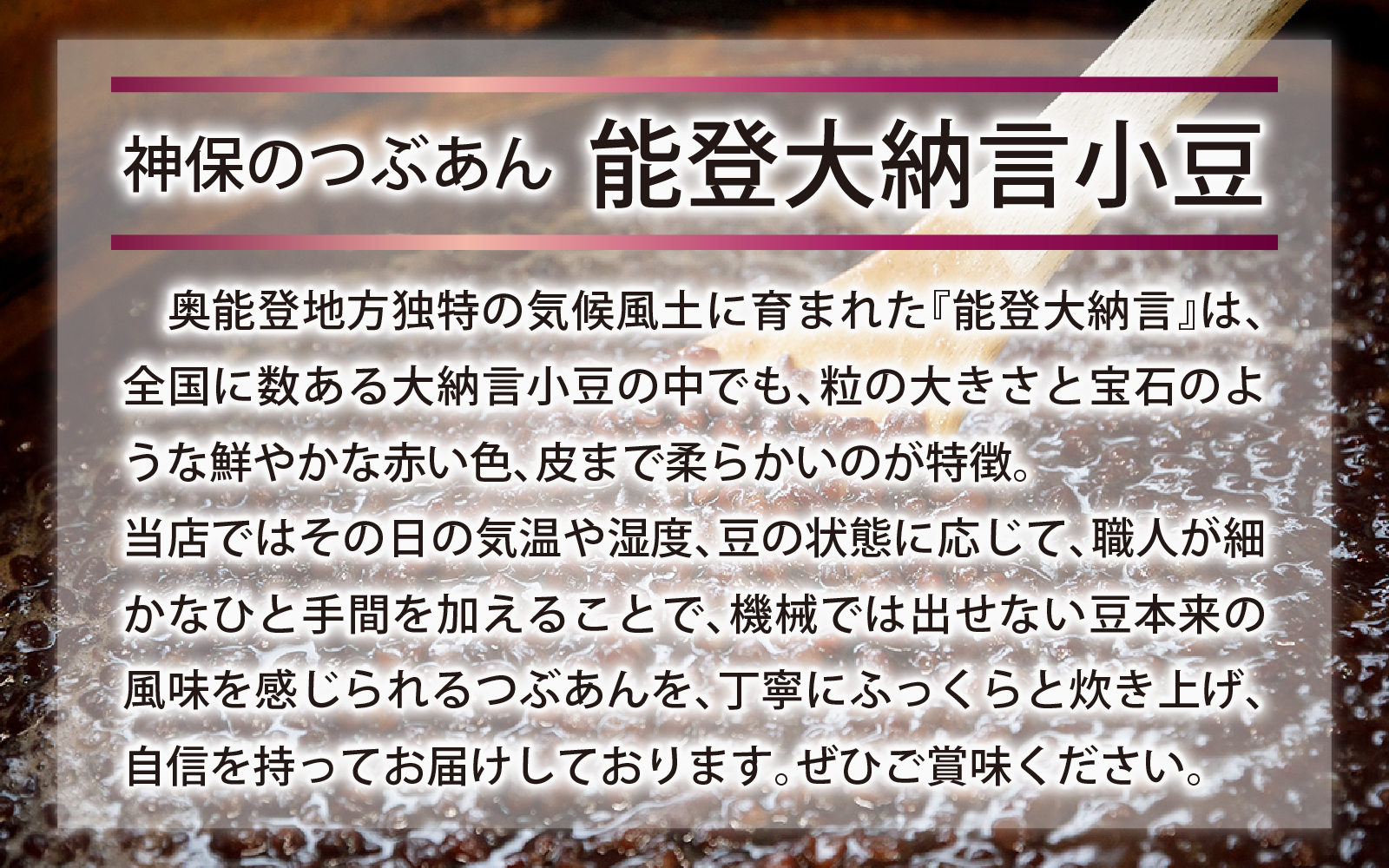 能登大納言小豆の風味をそのままに、ていねいに炊き上げ、ふっくらと焼いた生地で包みました。どらやきの極意をぜひご賞味ください。