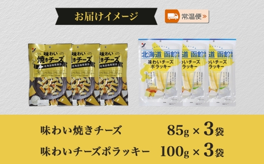 「味わい焼きチーズ」と「味わいチーズポラッキー」をセットにしてお届けします。