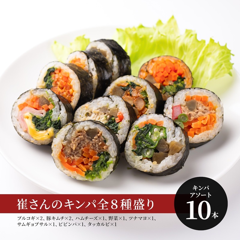 ※キンパ(1本)は10個に切り分けて包装しお届けします。