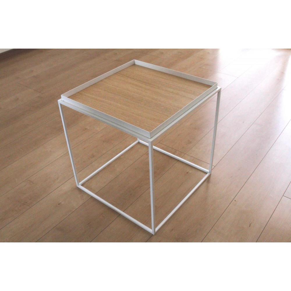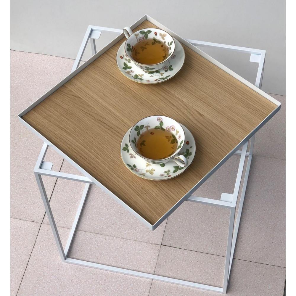 天板をはずしてトレイとしても使えるテーブルです。大きさ、カラーが選べます。本体フレームは9mm角パイプ。トレイは1.6mmの鉄板を曲げて溶接しています。