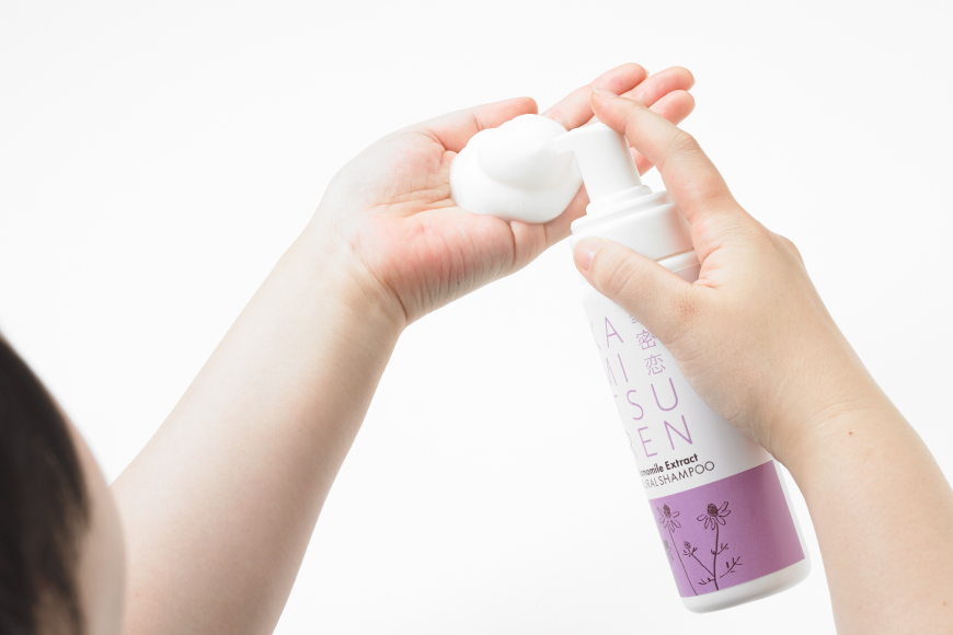 カミツレエキスの保湿成分が頭皮をケアしながらやさしく洗い上げます。