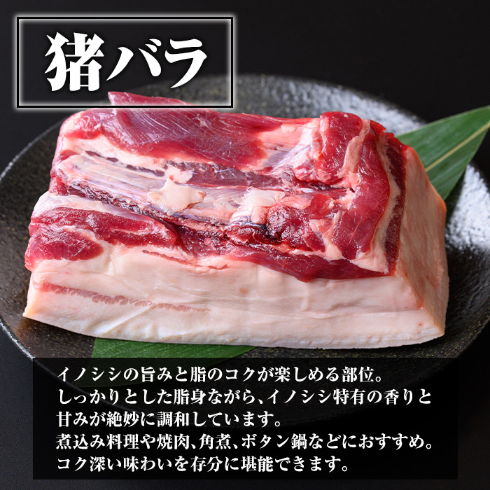 原材料:イノシシ肉バラ、イノシシ肉ロース、イノシシ肉モモ