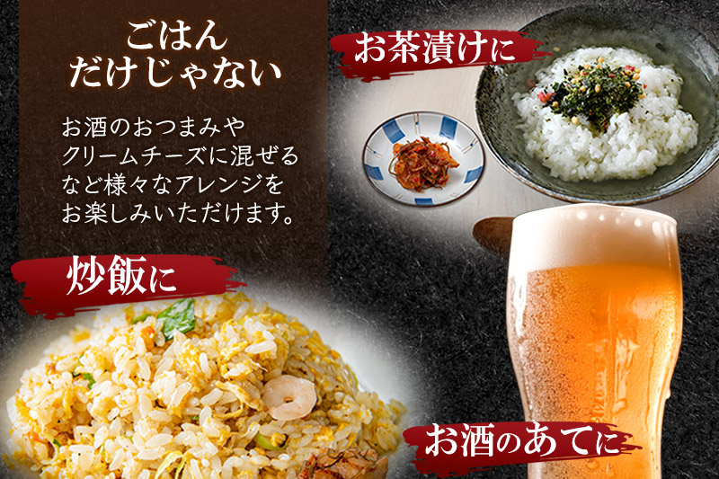 袋から出してすぐに食べることが出来、手軽にご飯に乗せて食べてよし!お茶請けや、お酒のおつまみとしても相性良くお召上がりいただけます。