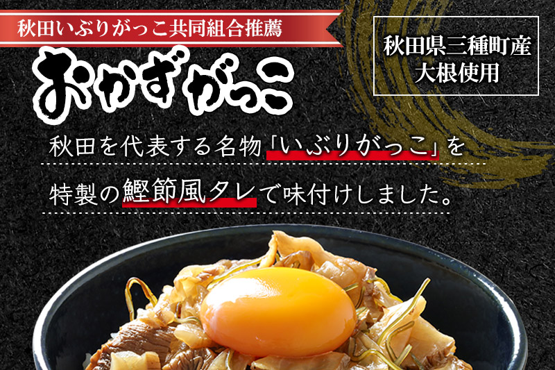 秋田名物のいぶりがっこを食べやすい大きさに乱切りカットし、特製の鰹節風タレで味付けしました。