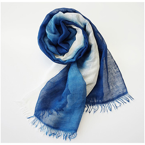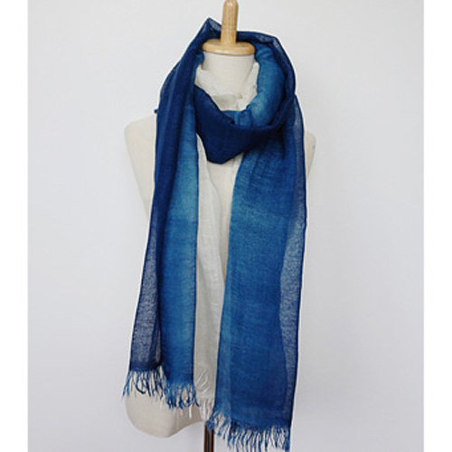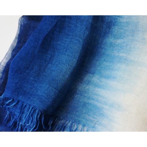 生地は当社製造のオリジナル素材です。経糸にレーヨン系のモダール、緯糸にとても細いリネン糸(麻100番手)を使っているので、薄く柔らかく軽やかなストールです。