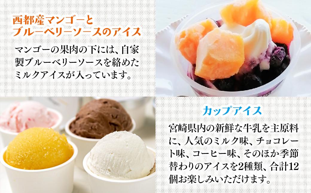 当店カフェメニューで人気の「西都産マンゴーと西都産ブルーベリーのパフェ」をカップアイスに仕上げました。