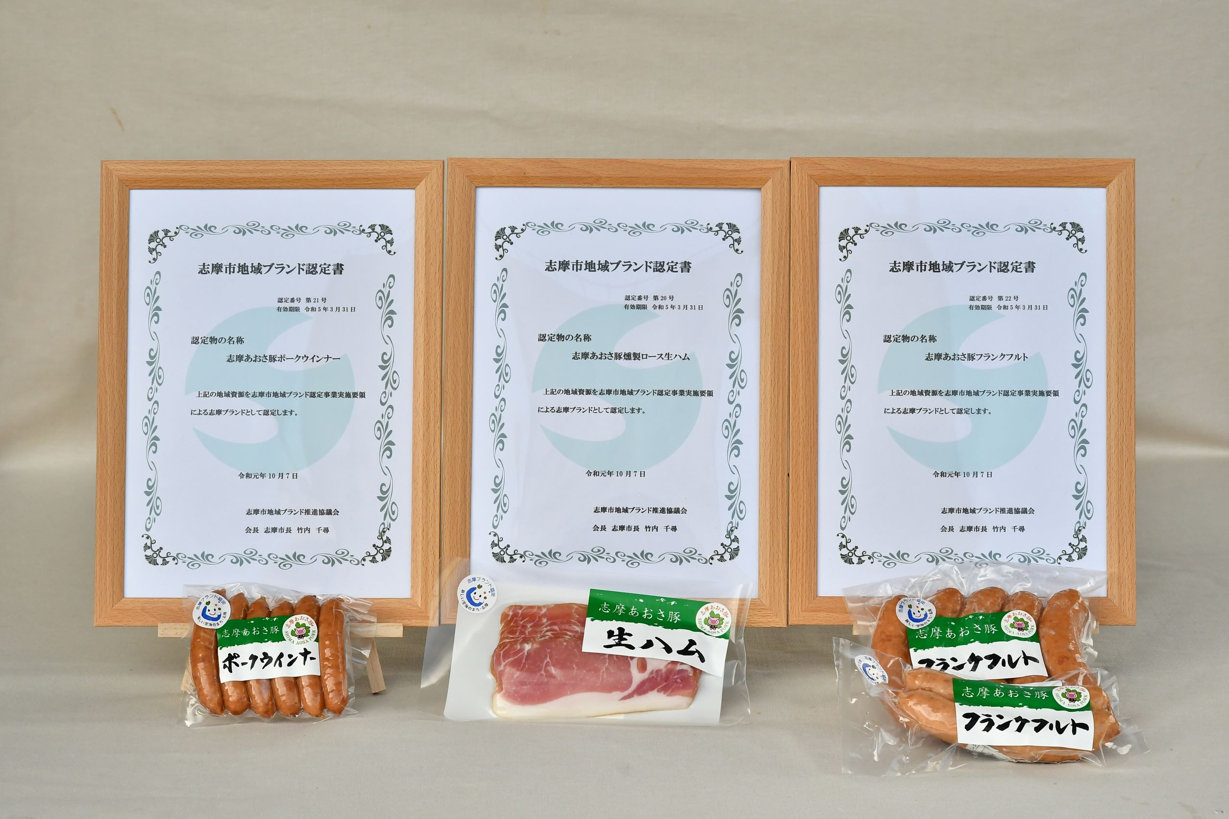お肉に甘みがあり、とろける様な柔らかい食感が特徴の「志摩あおさ豚」を使って贅沢に生ハム、ウインナー、フランクフルトを造りました。