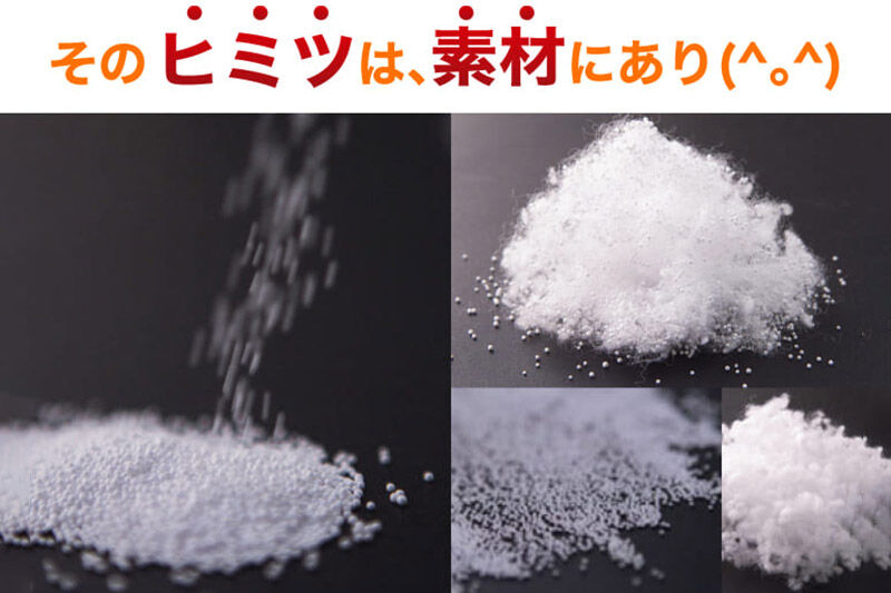 超極小ビーズ素材とポリエステルわたの混合素材なので、どのような体型や寝姿勢でも、首や肩にやさしくフィット。枕が私たちの体型や寝姿勢に合わせて自由自在に変形してくれます。