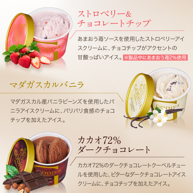 ゴディバがお届けするチョコレートを楽しむアイスをバラエティ豊かに詰め合わせました。まろやかな口どけと深い味わいが堪能いただけます。ゴディバが自信をもってお届けする上質なアイスの詰め合わせになります。