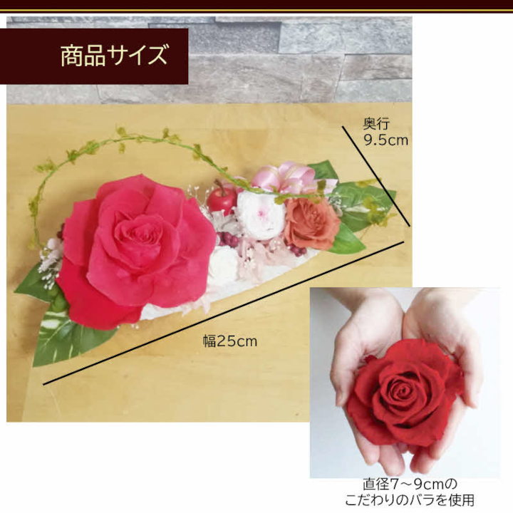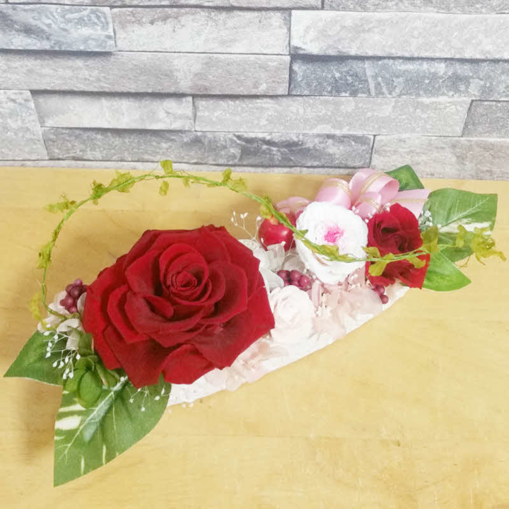 #プリザーブドフラワー フラワーアレンジメント 大きなバラ 濃レッドフラワー インテリア 花 長持ち お手入れ簡単 花ギフト 香りのない花 花粉のない花 小花アレンジメント