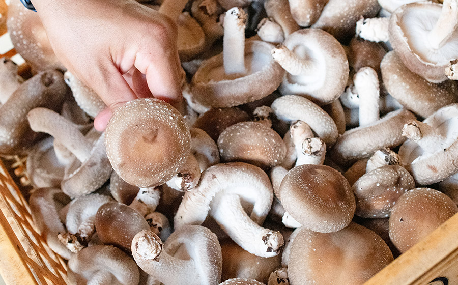 山形県の出羽三山から流れる豊かな天然水で育った、こだわりの無農薬しいたけです。