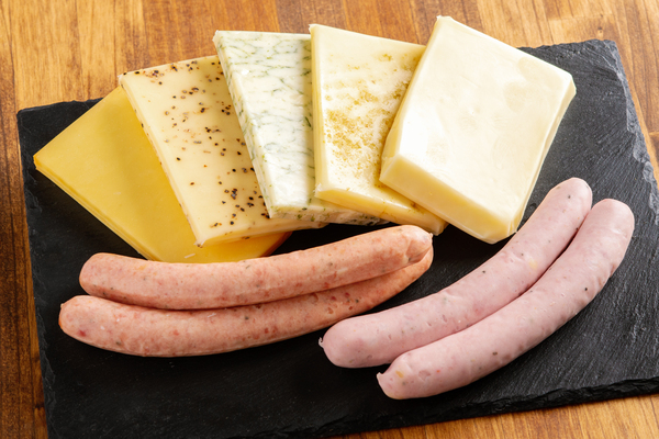 ソーセージは十勝産の豚モモ肉を使ったスモークと、当社のチーズを混ぜ込んだ風味豊かな2種類です。