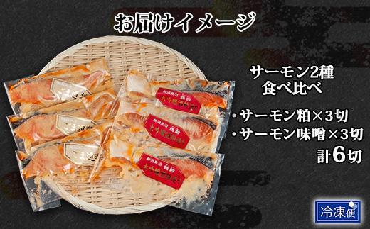 酒粕で漬けたサーモンと越後みそで漬けたサーモンをセットにしました!