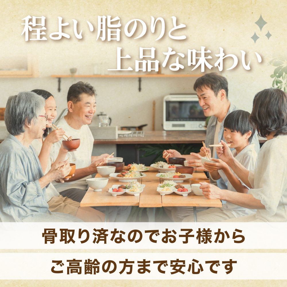 ほどよい脂のりと上品な味わいが特長の銀鮭を丁寧に加工。骨取り済みなので、小さなお子様からご高齢の方まで安心してお召し上がりいただけます。