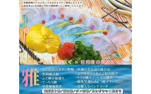 名物!南あわじ産 三年とらふぐ × 糀料理の贅沢ディナーコース(2名様分)にも使える お食事券 3000円×6枚