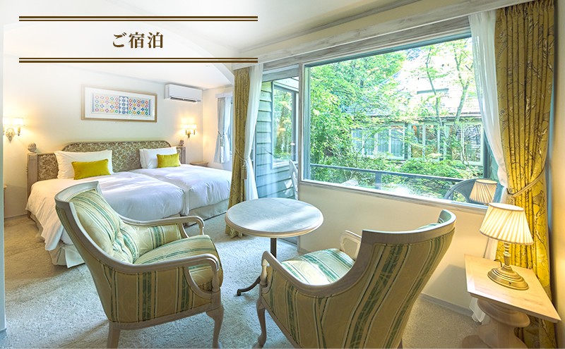 オーベルジュとはフランス語で「宿泊できるレストラン」の意。レストランに灯がともるまで、50平方メートルのジュニアスイートのお部屋で何もしない贅沢なひととき。