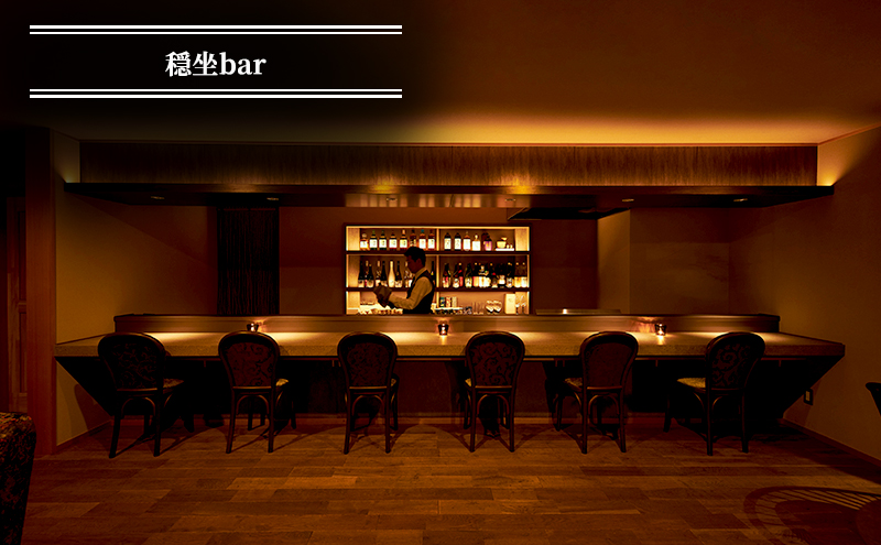 薪のおき火でじっくり炙られるのは、信州の千代幻豚や赤身肉の熟成牛、若鶏など その時期イチオシの厳選素材。焼き上がりを待つ至福の時間は、4000本以上が並ぶ自慢のワインセラーから運ばれるワインと、自家農園の無農薬野菜や日本海直送の魚介類が奏でる珠玉の前菜でお楽しみください。穏坐barでは軽井沢の自然の恵みと日本酒のマリアージュを。