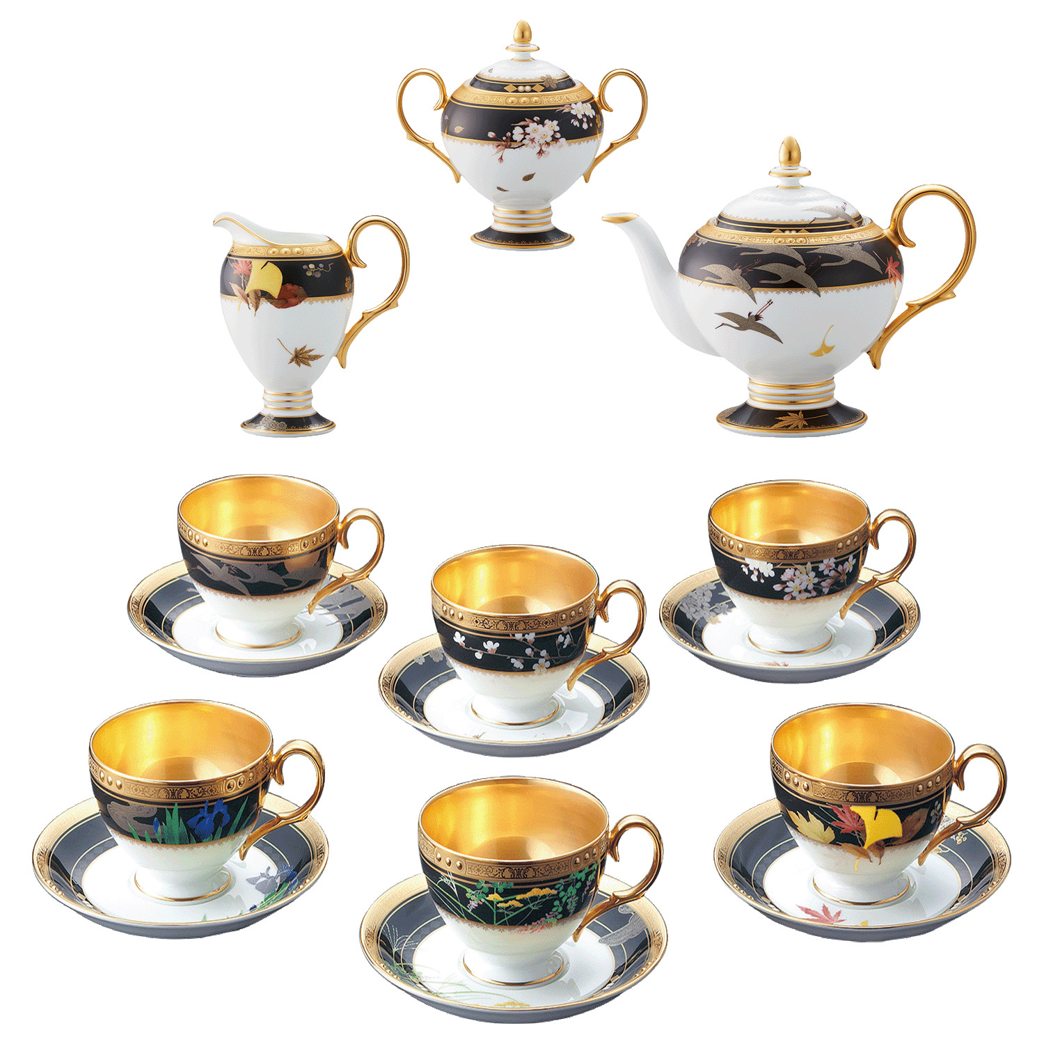 鶴、梅、桜、杜若、秋草、吹き寄せ、季節を美しく表現しました。優雅なティータイムをお楽しみいただけるセットです。