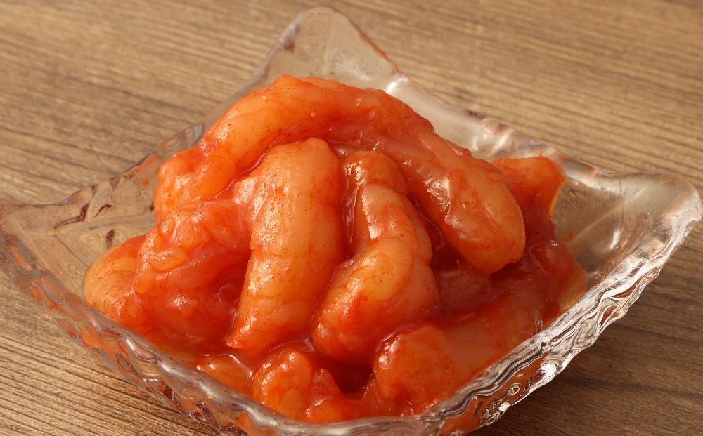 ロシア産甘えびを丁寧にむき身にして、海鮮キムチ漬けにしてありますのでえびがゴロゴロ入っています。