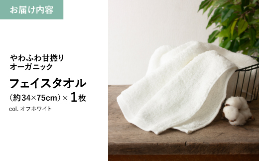 やわふわ甘撚りオーガニック フェイスタオル(オフホワイト×1枚) 【m100-22-1P-C】【トクダ】