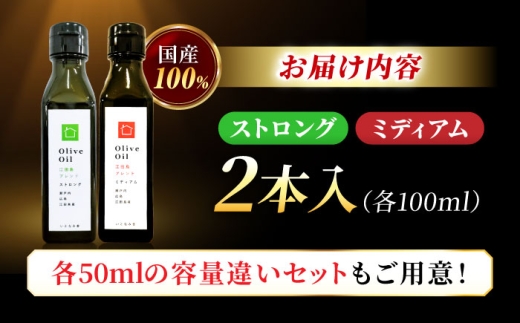 【11月中旬から順次発送予定】「江田島ブレンド ミディアム」「江田島ブレンド ストロング」 オリーブオイルセット 計2本(各100mL×1本) エキストラバージン エクストラバージン おりーぶおいる おいる オリーブ油 油 調味料 食用油 ヘルシー 健康 国産 広島県産 贈答 ギフト オリーブオイル リピート ギフト プレゼント 贈答 人気 高品質 好評 江田島市/瀬戸内いとなみ舎[XBB043]