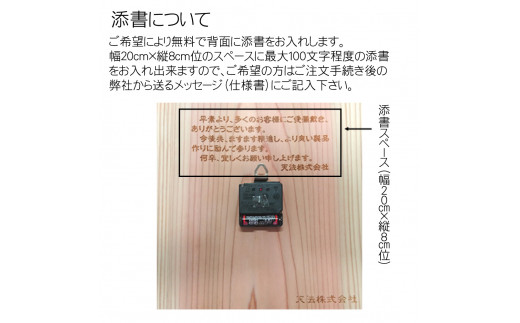 背面に100文字程度の添書をお入れする事も出来ますので、お子様やご家族、恋人、友人への気持ちを込めた世界に一つの時計をお贈りする事が出来ます。