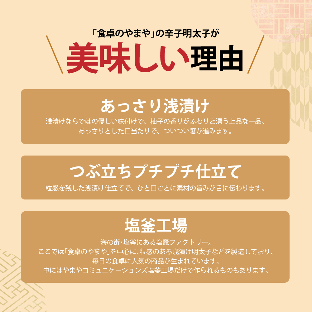 ほんのり柚子香る浅漬けタイプの明太子です。