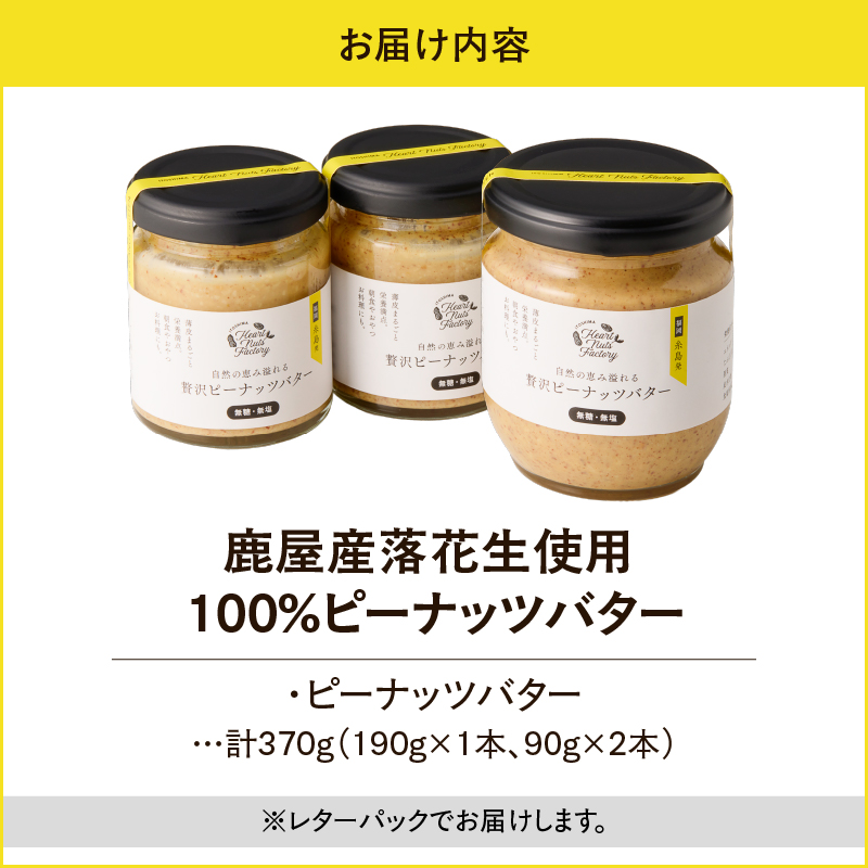 鹿屋産落花生使用 100%ピーナッツバター(薄皮付き) 計370g(190g×1本、90g×2本)