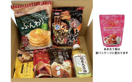 九州佐賀県産小麦を使用した大人気のミックス粉商品と、いろいろなお料理にお使いいただける国産大豆油をセットにしました。