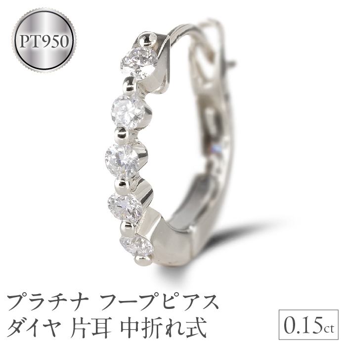 ダイヤモンドの輝きを優美に生かした2点留め中折れフープピアス