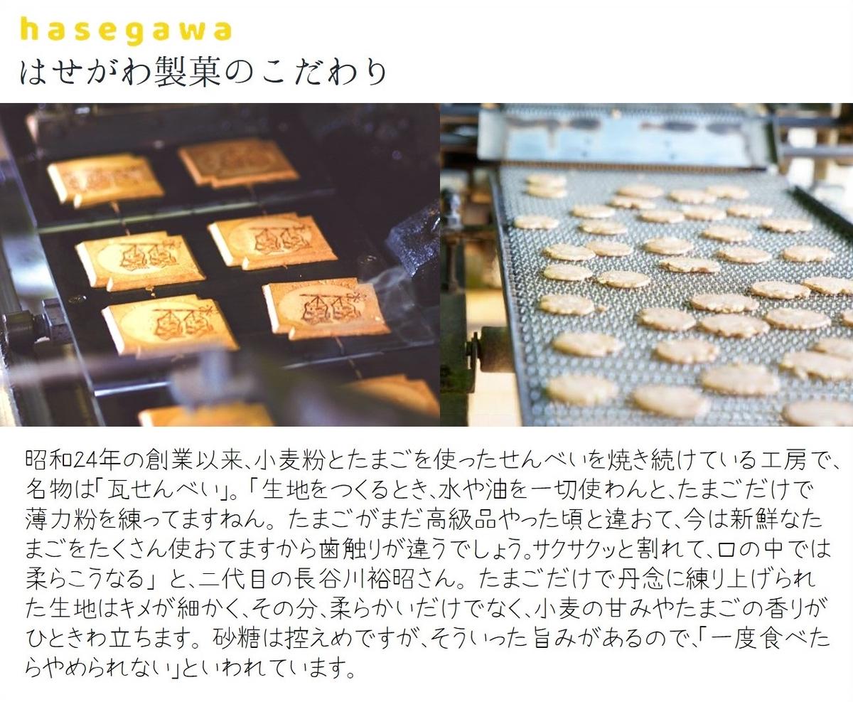 はせがわ製菓のおせんべいのなかで、いちばんたまごをふんだんに使っている高級品。 食べた瞬間にふわりとたまごの香りが広がります。 焼き印は職人が一枚一枚、手作業で押しています。 会社のロゴや事業の記念マークなどオリジナルの焼き印をつくることもできますので、ご希望の方は一度ご相談してみてください。