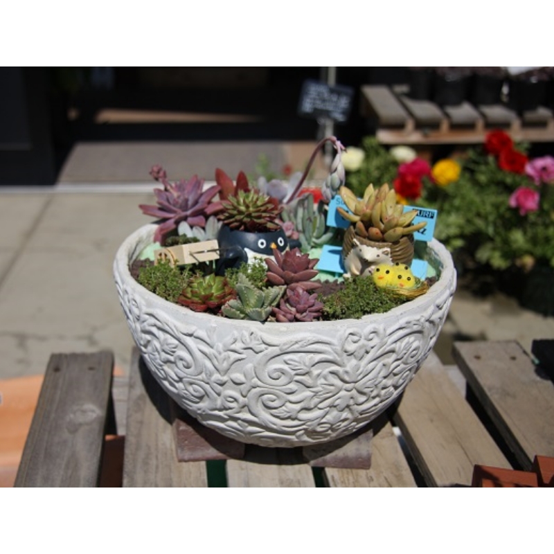 ( 多肉植物 花 寄せ植え 鉢植え ガーデニング 季節 春 夏 秋 鉢 ブリキ鉢 陶器鉢 )