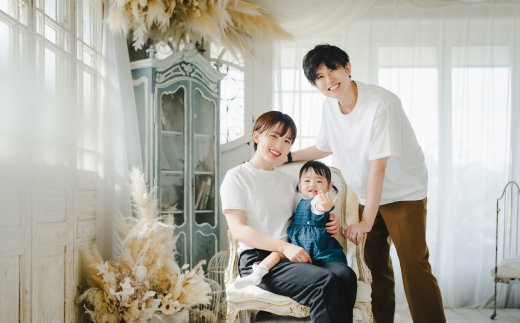 誕生日記念、生後半年記念、入園・入学、卒園・卒業記念、マタニティ、家族写真などの写真撮影。
