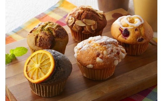 8〜10種類のマフィンを1〜2個づつ、全部で10個のセットです。 (プレーン・チョコブロック・ベリーチーズなど季節の商品も入ります。)