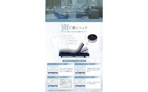 コードレスのリモコンや音声による操作ができるマルチ機能付き。背上げ、脚上げの2モータータイプ。