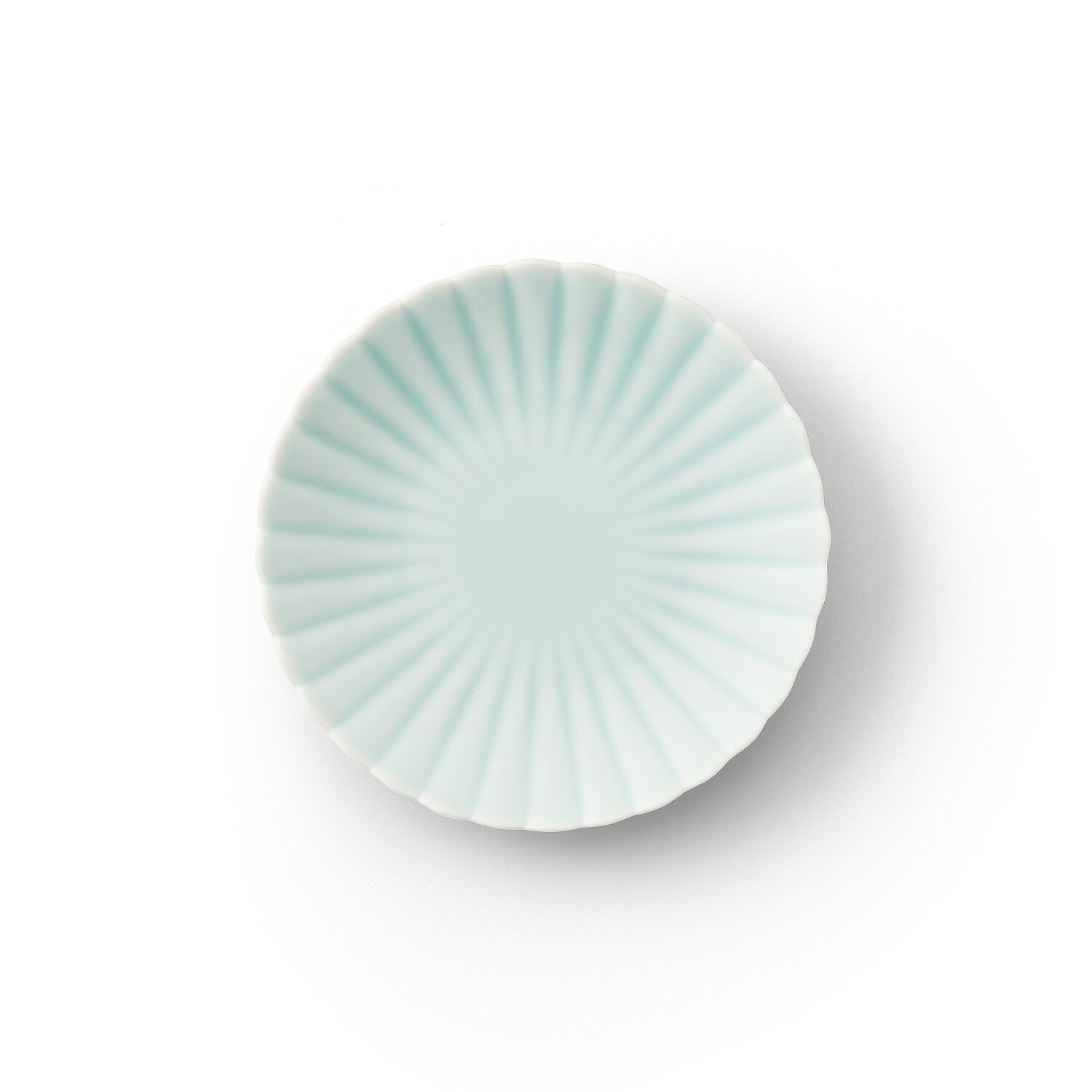 花びらを模した菊割の形状に、鍋島青磁の表現を応用した畑萬独自の表現技法モイストを組み合わせ、モダンなデザインに仕上げています。