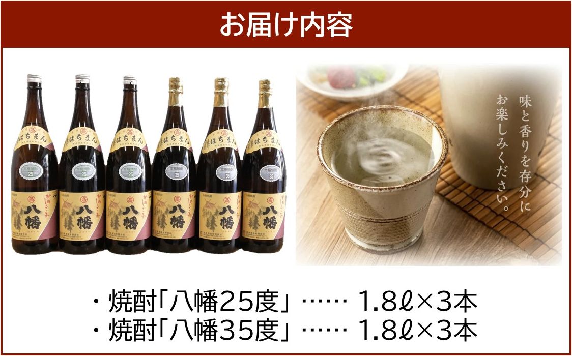 焼酎「八幡25度」1.8L×3本・焼酎「八幡35度」1.8L×3本