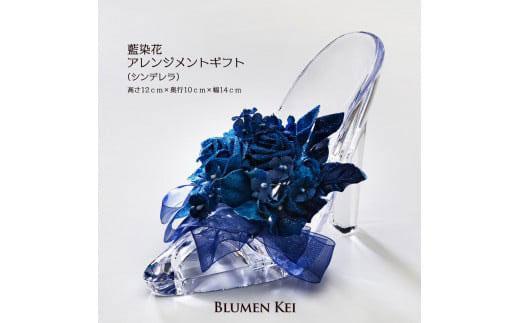 本藍染で染めた布で可愛いミニバラ、カスミ草等を創作し、エレガントなシンデレラの靴の造形の器にアレンジした商品です。結婚お祝いやあらゆるお祝いに最適です。