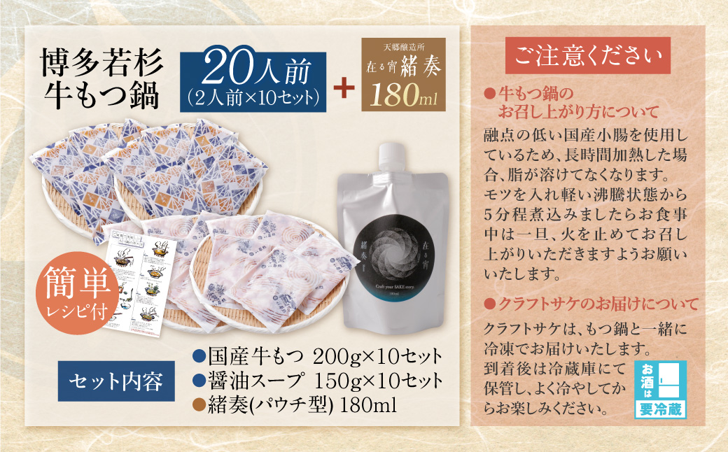 牛もつ鍋(国産牛もつ200g、醤油スープ150g)×10セット