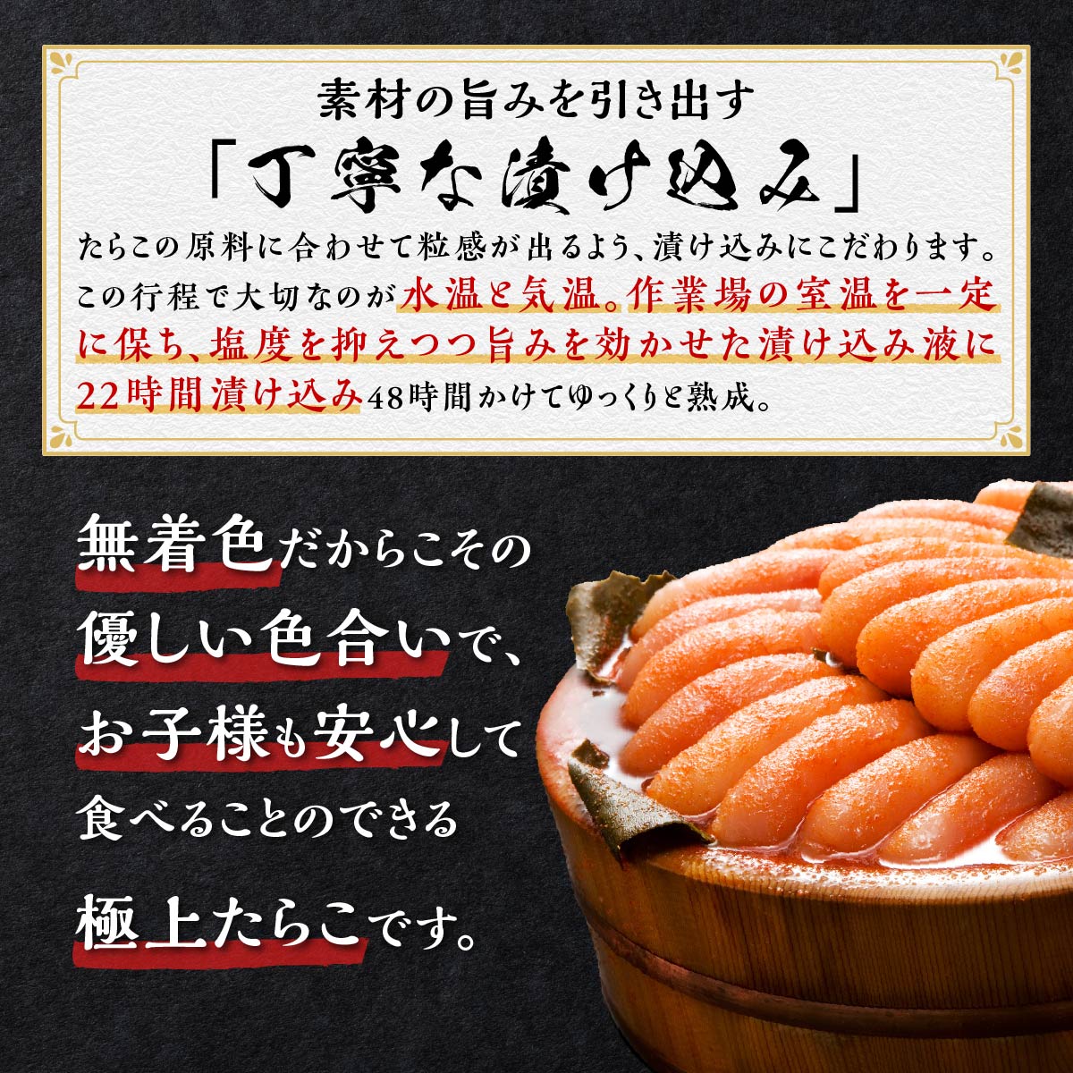 素材を厳選しておりますので、塩分を抑えているのに、たらこの粒感は失われておりません。