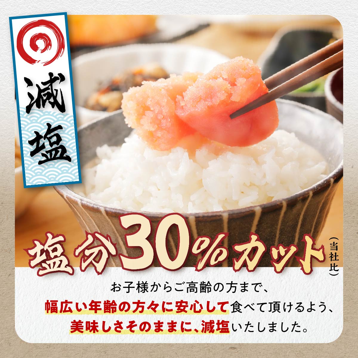 同社既存商品に比べ、30%塩分を抑えました。