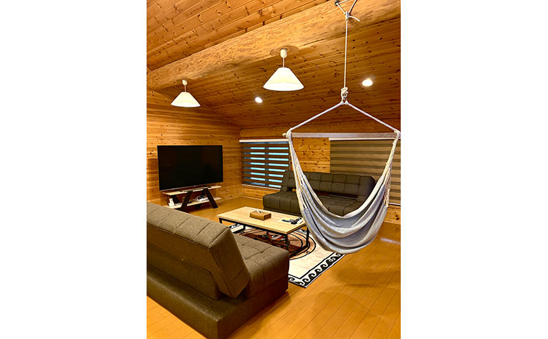 ハンモックやソファを備えた空間に、広々としたキッチンも完備し、ゆったりとお過ごしいただけます。