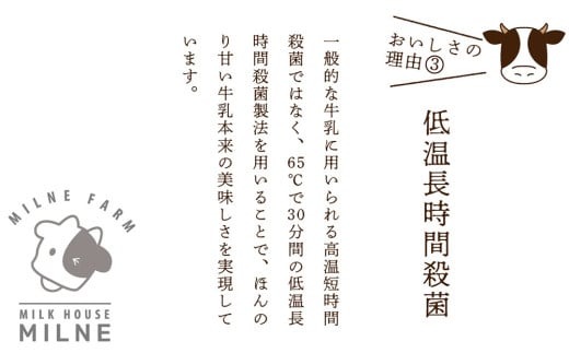 一般的な牛乳に用いられる高温短時間殺菌とは異なり、ほんのり甘い牛乳の美味しさを実現しています。
