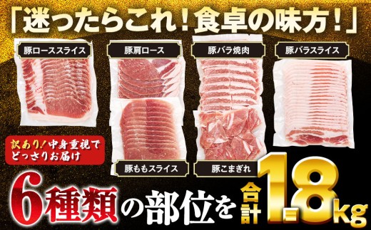 【訳あり】くすの豚 1.8kg 6種 バラエティーパック 豚肉 1.8キロ 食べ比べ 小分け 詰め合わせ セット 真空パック 冷凍 保存しやすい 簡単調理
