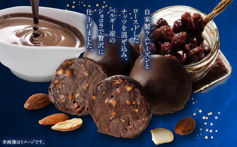 自家製ラムレーズンとローストしたナッツを混ぜ込み、ベルギー産のショコラで贅沢に仕上げました。
